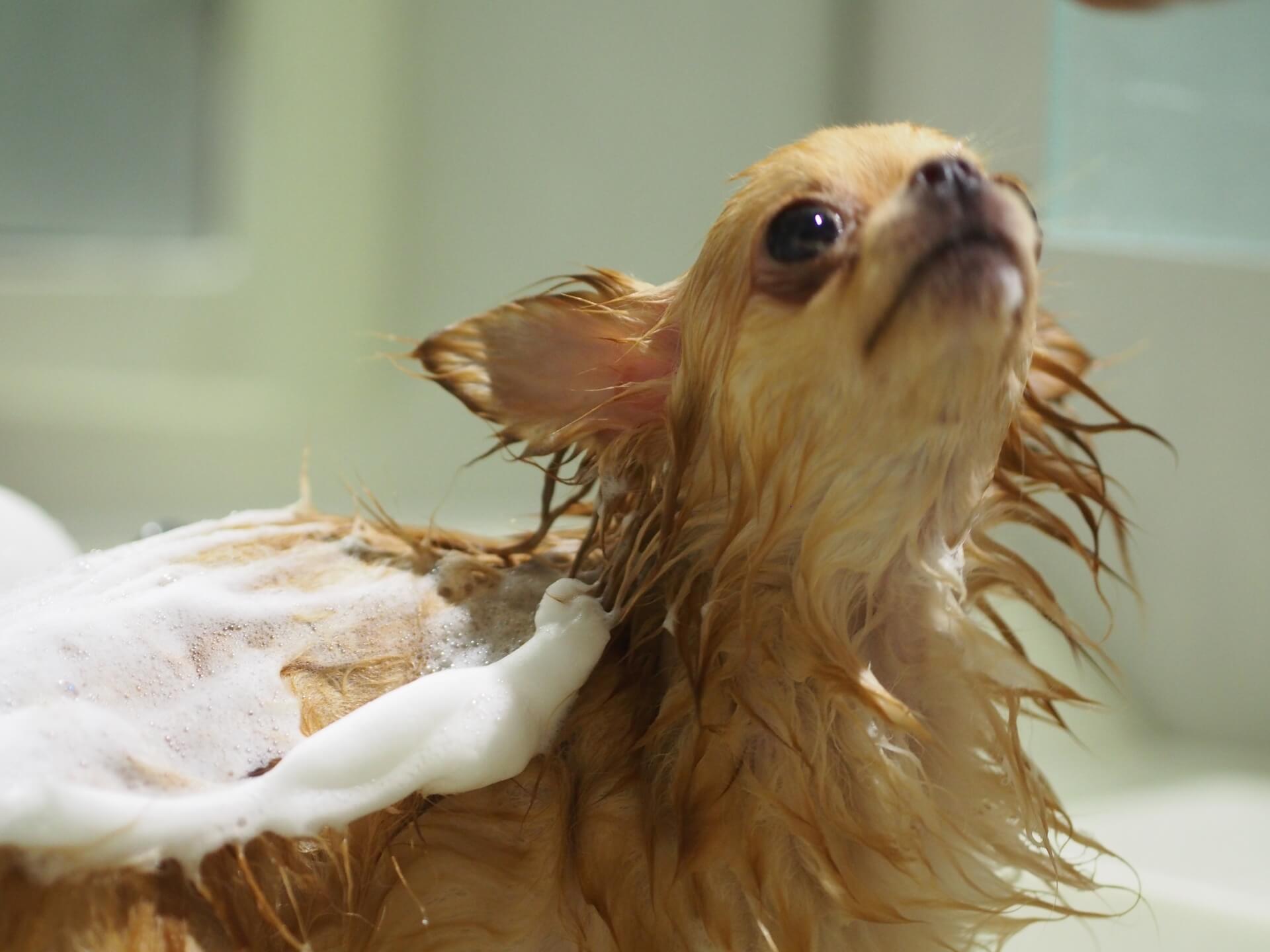 DOG@MerryHouseでは、すべてのワンちゃんに「ふわふわ感」と健康をお届けするため、オーガニックシャンプーを使い分け。消臭効果の高いシャンプーや、オゾン浴槽による臭い戻りゼロの徹底ケアで、愛犬を清潔かつ快適に仕上げます。